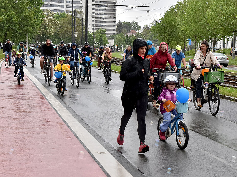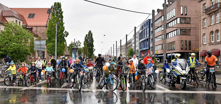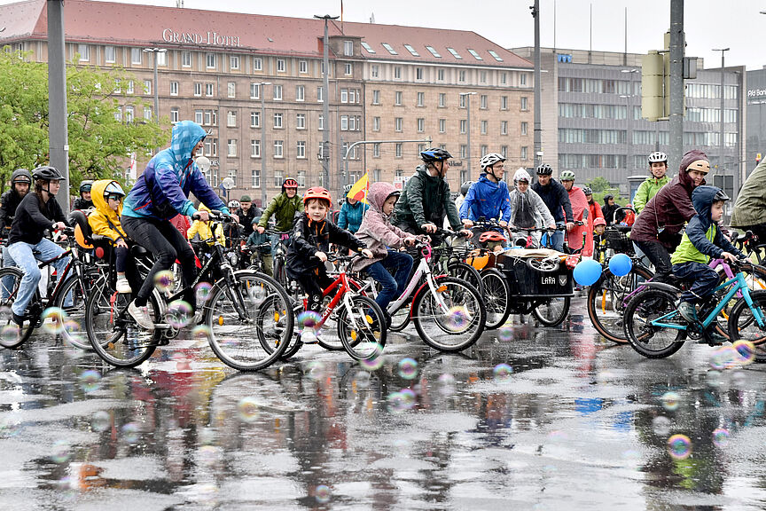 500 kleine und große Radler trotzten dem Wetter und demonstrierten für kindersichere Straßen in Nürnberg