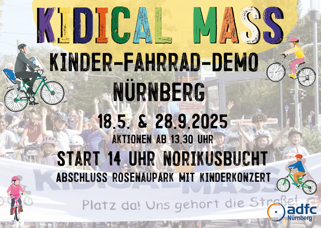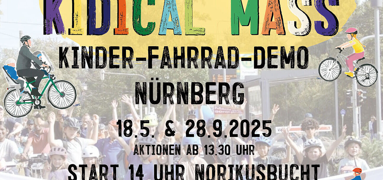 Die Kidical Mass ist eine deutschlandweite Bewegung, die sich für sichere und kinderfreundliche Mobilität einsetzt. In über 180 Städten gehen Kinder, Eltern und Unterstützende auf die Straße, um eine bessere Radinfrastruktur und eine zukunftsorientierte Verkehrspolitik zu fordern. Weitere Informationen finden sich unter https://touren-termine.adfc.de/radveranstaltung/171697-kidical-mass-nurnberg-september-2025 und https://kinderaufsrad.org/