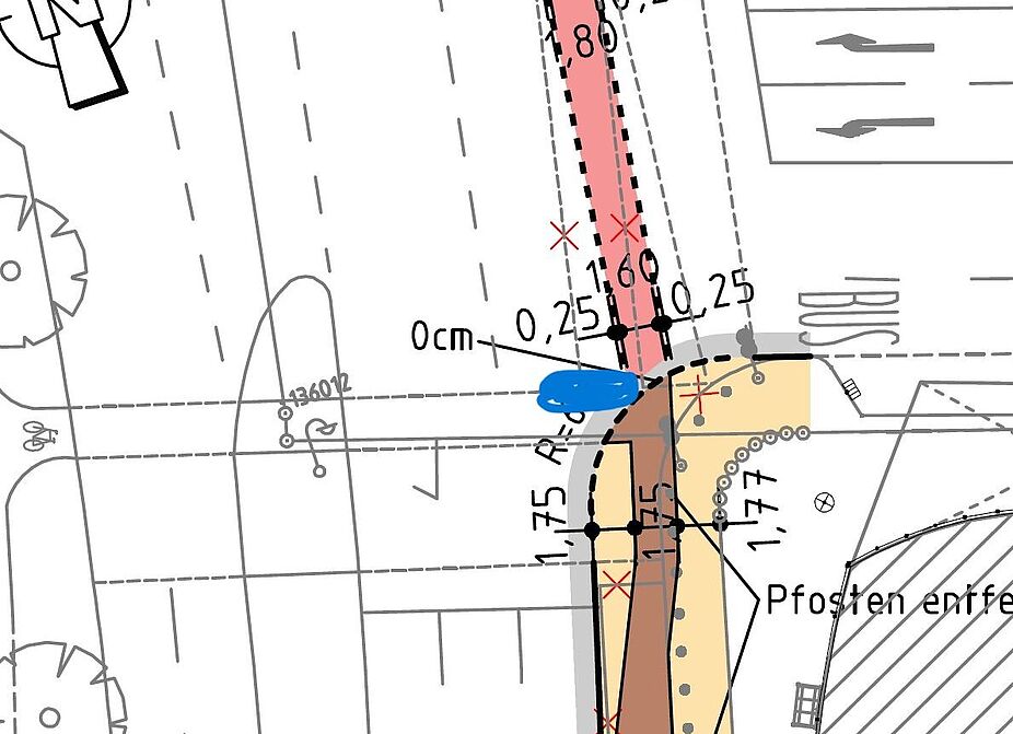 Die Mitglieder des Verkehrsausschusses des Stadtrats diskutieren am 16. Januar 2025, wie die Kreuzung sicherer werden kann. Die Verwaltung schlägt vor, die Fahrspuren neu einzuteilen, und den Radweg vom Straßenrand als weitere Fahrspur zwischen die Geradeaus- und die Rechtsabbiegespur in die Mitte zu verlagern. Grundsätzlich spricht sich der ADFC als größte Interessenvertretung der Radfahrer:innen in Deutschland und weltweit gegen Radstreifen in Mittellage aus.