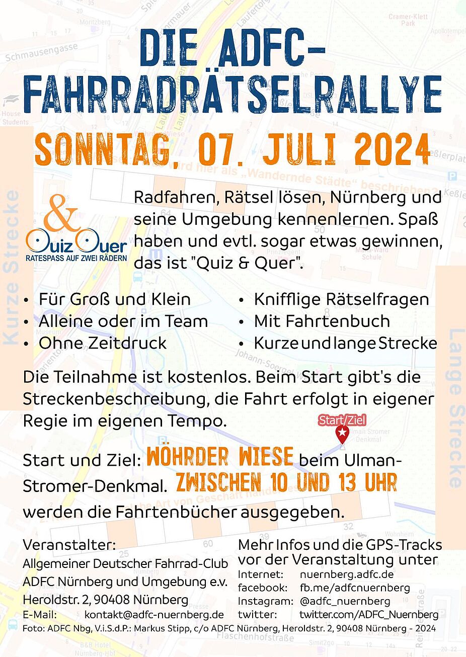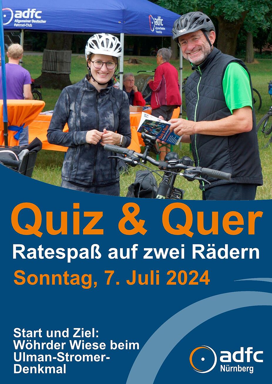 Auch in diesem Jahr lautet das Motto am ersten Sonntag im Juli wieder „Auf zu Quiz & Quer“! Unsere beliebte Fahrrad-Rallye bietet wieder eine kurze Runde für Familien mit 22 km und eine längere mit 41 km – Rätselspaß für alle ist garantiert!